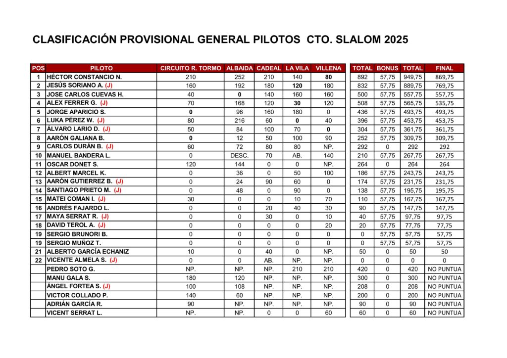 Reglamento técnico slalom 2025