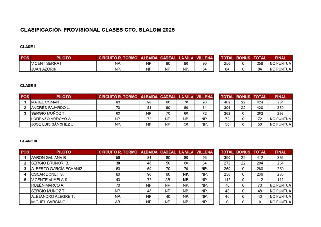 Reglamento deportivo slalom 2025